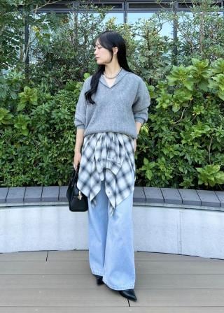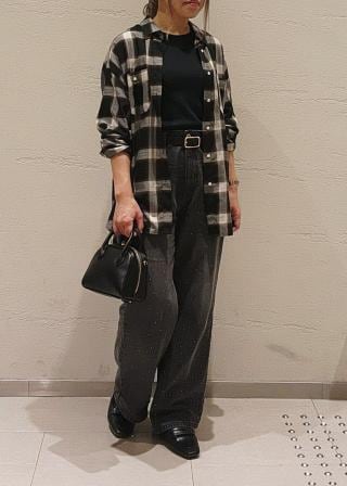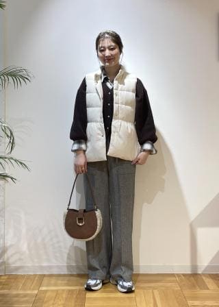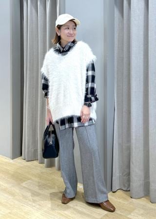 ・アイラインスカートやワイドパンツとのコーディネートが合わせやすく大人カジュアルなスタイルが完成。