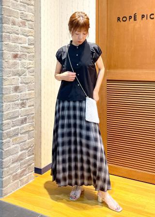 ・トロピカルなプリントスカートを合わせると夏らしいスタイルが完成。