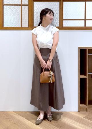 ・フレアスカート、アイラインスカートなどに裾インで、すっきりとしたきれいめコーデに。
