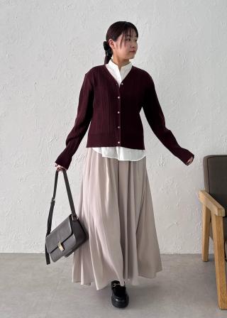 スカートでもパンツでも合わせやすいです。カーディガンのインに着ても、袖がもたつかないのでスッキリ着れます。