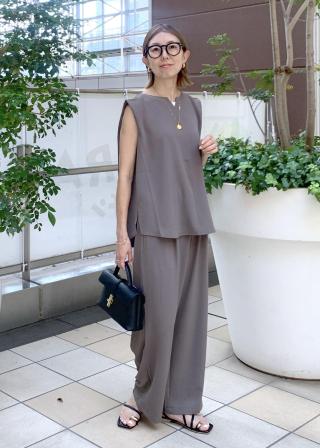 ・シンプルなテーパードパンツ、ミディアム丈のスカートなどを合わせて、きれいめなコーディネートに。