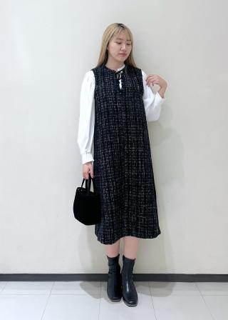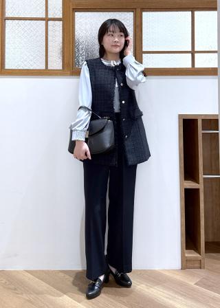 ・冬はジャケットやニットカーディガンの下に合わせるのがおすすめ。