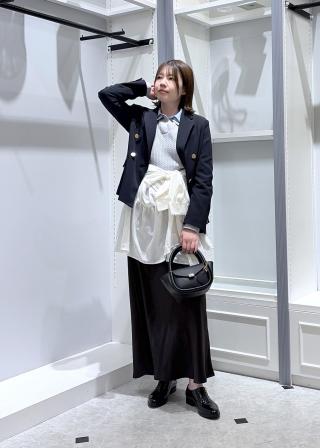 ・羽織として取り入れる際は、アイラインスカートとも好バランス。