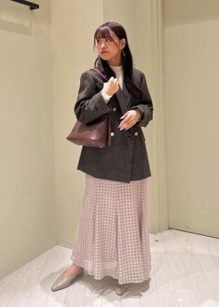・ウールライク素材のジャケットやジャンパースカート、ニットのインナーなどにコーディネートしたレイヤードスタイルがおすすめ。