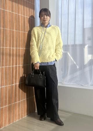 ・インナーに合わせても着膨れしにくく、ジャケットのインナーに合わせやすい程よい厚みのある素材感。