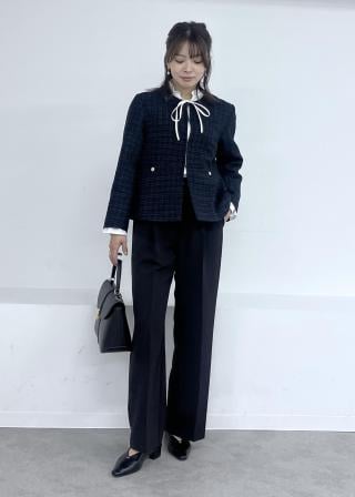 ・キーネックジャンパースカート(品番:GDE55040)と合わせたお仕事着としても対応する大人スタイルがおすすめ。
