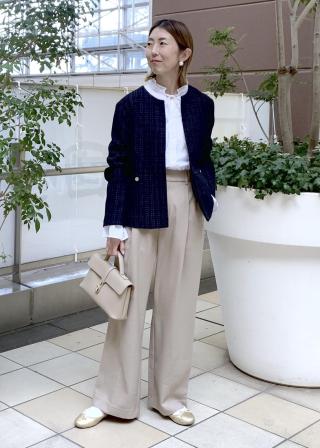 ・ニットやスウェットとあわせたカジュアルダウンしたスタイル。
