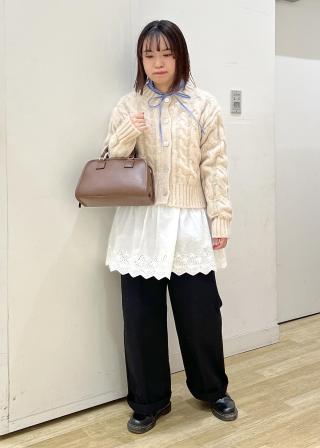 首元がリボンで結べたり、袖口がボリュームのあるシルエットなので女性らしいアイテムです!