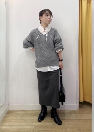 ・キーネックジャンパースカート(品番:GDE55040)と合わせたお仕事着としても対応する大人スタイルがおすすめ。