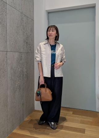 ・秋の軽羽織シャツとして着やすいゆとりのあるサイズ感のシャツ。