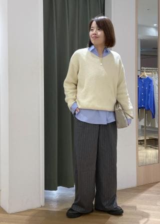 全体的にゆったりしてるので、冬はニットを合わせても着こなせます。