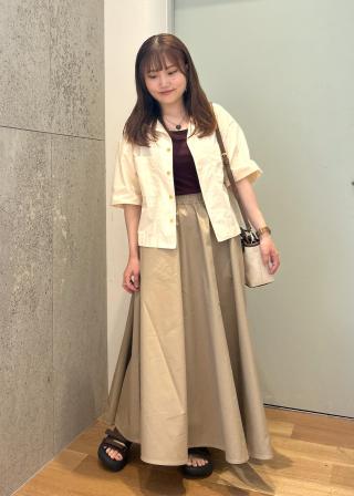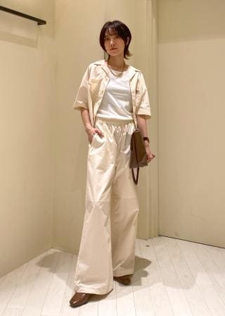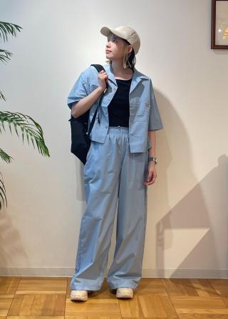 ・サックスブルーはホワイト系のボトム合わせで夏らしく爽やかに決まる。