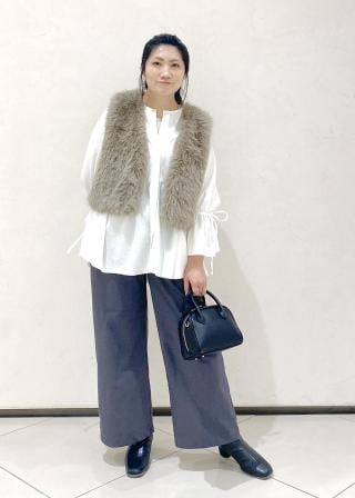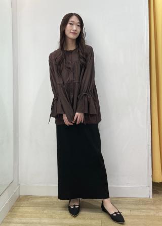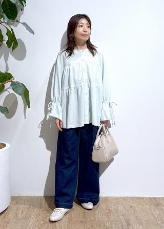 ・ボリュームのあるフェミニンムードなトップスなので、スッキリとキレイめボトムスなどに合わせるとバランスの良いスタイリングに。