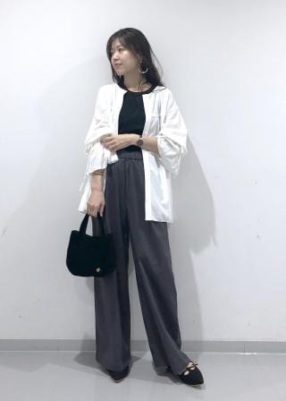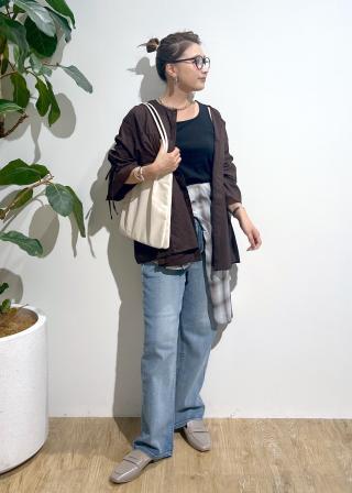 ・フロントボタンを開けて抜け感のある羽織のスタイリングもおすすめ。