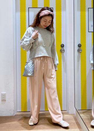 ウエストにタックが入っており、丈もお腹が隠れるぐらいのスッキリとしたスウェットです。