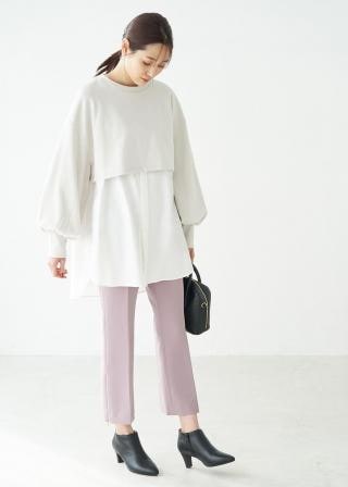 ・ショートプルオーバーは、ハイウエストボトムと好相性。