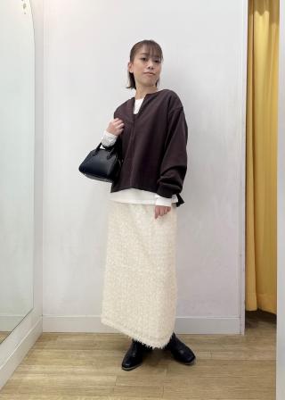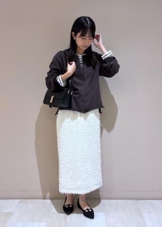 ・ボリュームのあるプリーツスカートなどのフェミニンムードが強めなアイテムとのスタイリングがおすすめ。