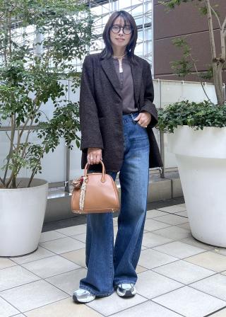 ・ワイドのイージーパンツやデニムを合わせると抜け感のあるスタイリングに。