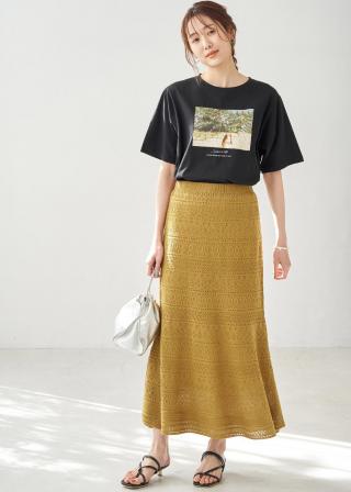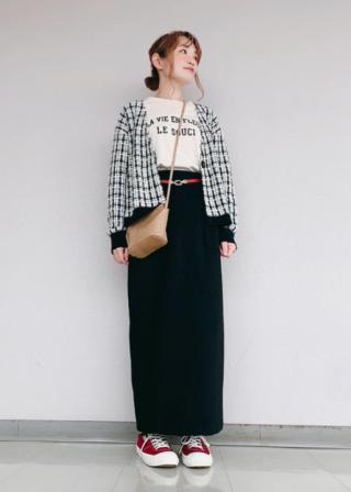 ・ロングスカートに合わせると、大人らしいリラックススタイルに。