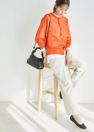 ・ハイウエストボトムにインして着るとモダンな着こなしに。