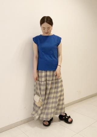 ・ギンガムチェックのボトムに合わせると爽やかに引き立つ。