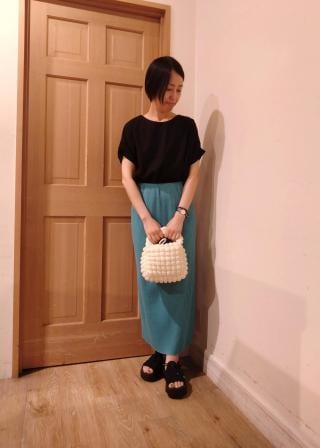 ・メリハリのあるIラインスカートもベストバランス。