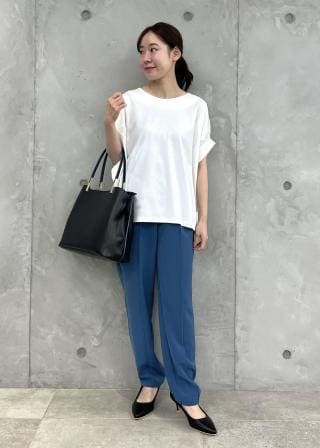 ・スティックパンツに合わせてきちんと感のあるコーデに。