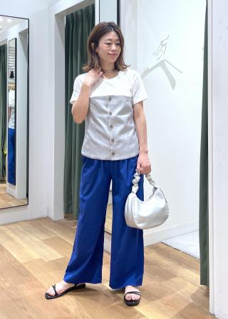・すっきりとしたパンツルック、もしくはアイラインスカートとのコーディネートがおすすめ。