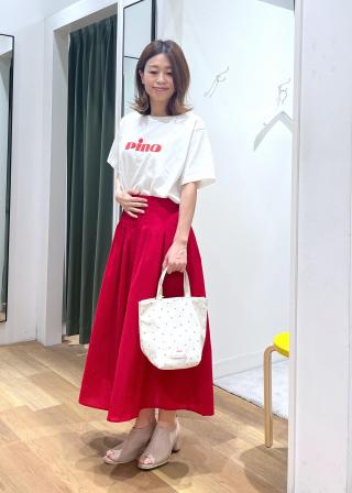 ・ロゴのカラーとボトムのカラーを揃えるとまとまりのあるコーディネートに。