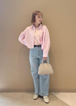 ・ピンクはホワイト系のボトムを合わせると爽やかな印象に。