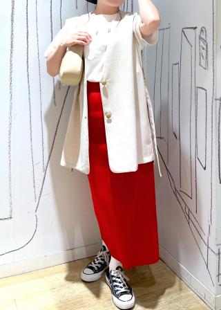 ・ハイライズボトムには、裾インですっきり仕上げるのが◎。