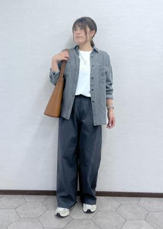 さらりとした着心地で、身幅はややゆとりのあるサイズ感です。着丈は腰まわりにかかる位の長さでパンツでもスカートでも合わせやすいです。