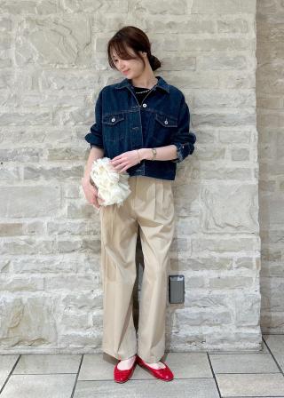 ・ハイライズボトムには、裾インですっきり仕上げるのが◎。