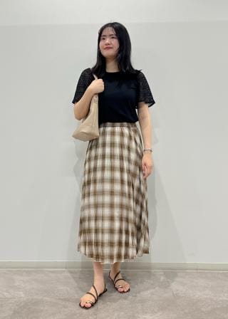 ・落ち感のある上品なスカートと合わせレバ通勤コーデの完成。