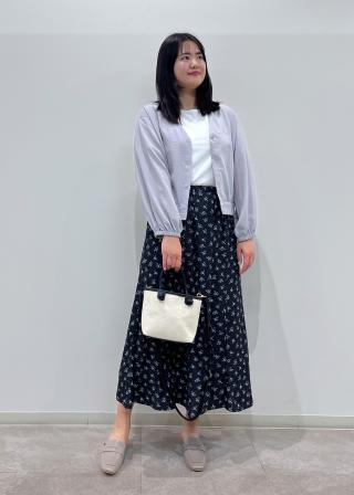 ・落ち感のある上品なスカートと合わせレバ通勤コーデの完成。