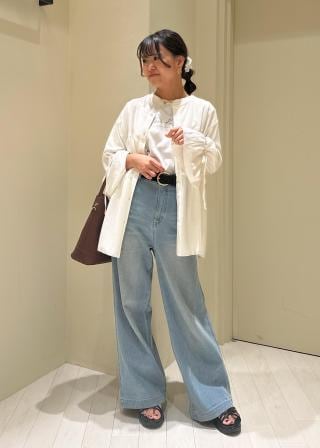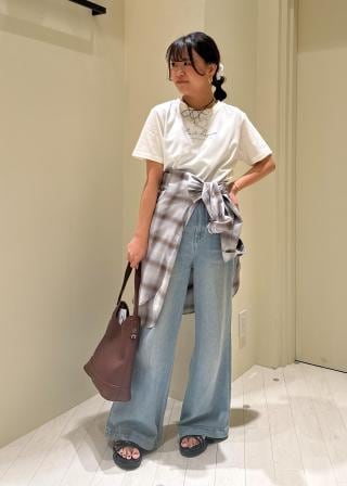 ・ハイライズボトムに裾をインして、トレンドルックが完成。
