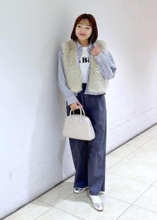 ・きれいめカジュアルなカットソーなので、ワイドパンツやロングスカートなど幅広いスタイリングに合わせられます。