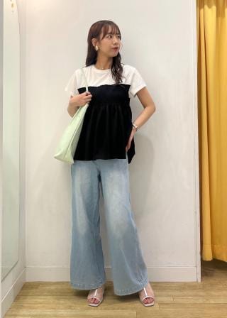 ・裾広がりのシルエットなので、すっきりシルエットのアイラインスカート合わせや、デニムと合わせた王道カジュアルスタイルがおすすめ。