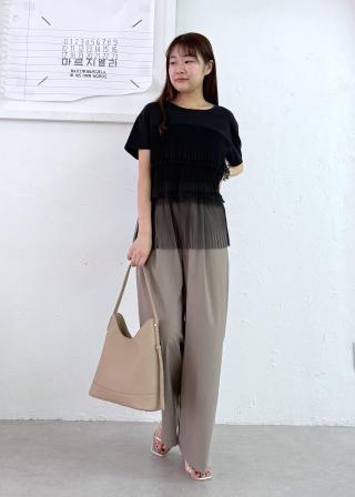 ・さらっとしたきれいめなカットソー素材とプリーツ加工を施した目の細かいチュール素材を使用。