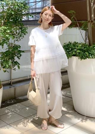 プリーツチュールドッキングTシャツ