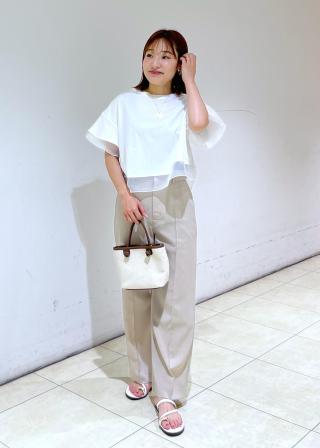 ・袖口や裾は、シアーな布帛素材で切り替えた半袖トップス。