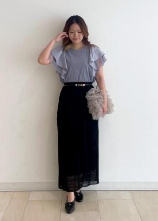 低身長の方、ウエストをスッキリ見せたい方はカットソーのみをインするとスッキリ感が出て◎
