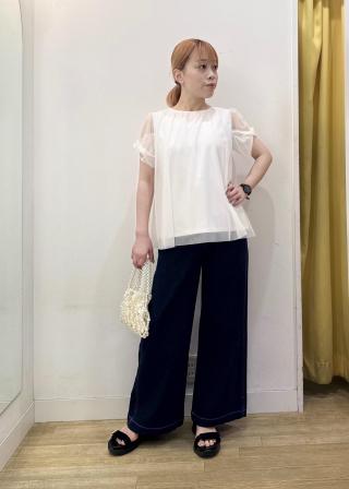 ・やや光沢感のあるなめらかな肌触りのきれいめなカット素材と、目が細かく柔らかなチュール素材を使用。