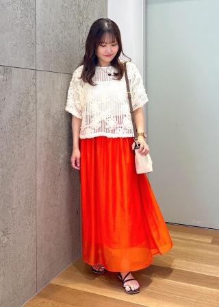 ・花のモチーフと軽やかなメッシュトップスで涼しげで上品な印象に。