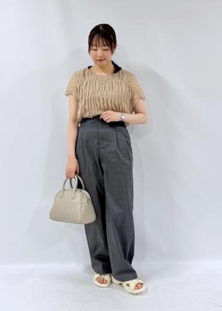 ほんのりスウィートな気分で着こなすシャーリングシアートップス。