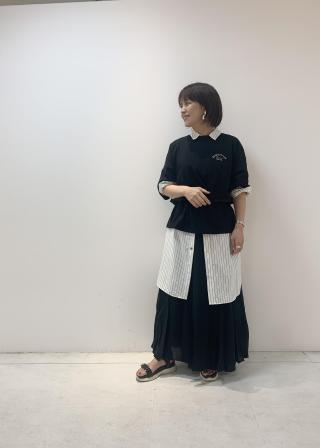 ・ボトムにスカートを合わせる時は、前だけインするとスッキリ見えに◎