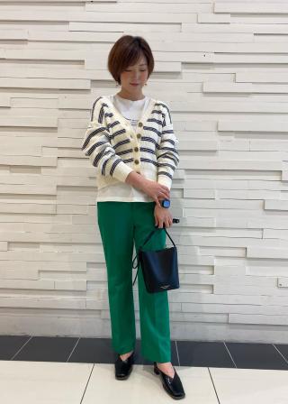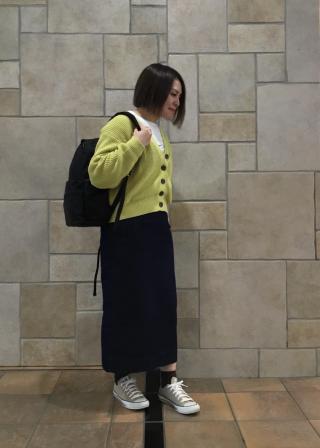・ルーズなニットカーディガンを重ねてラフなスタイリングに。
