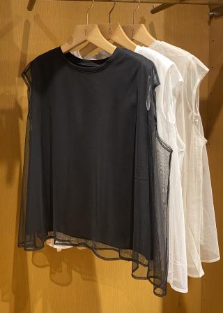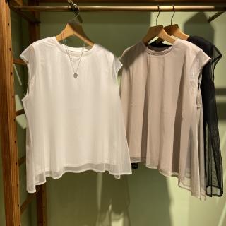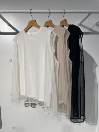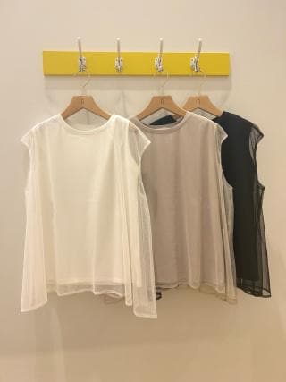 中のタンクトップはフィット感があるので、チュールではあまりピタピタ感が払拭されず・・・
