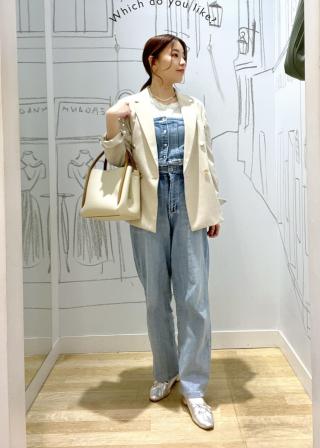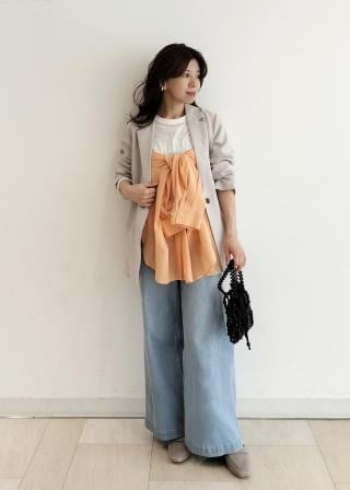 ・シンプルなジーンズ、チノパン合わせでも女性らしいカジュアルコーデが完成。