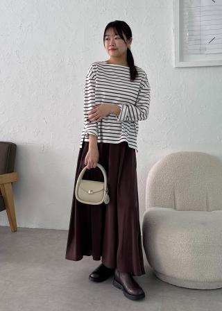 ・体のラインを拾わない、直線的でゆったりとした箱型のシルエットが特徴のボーダーカットソー。
